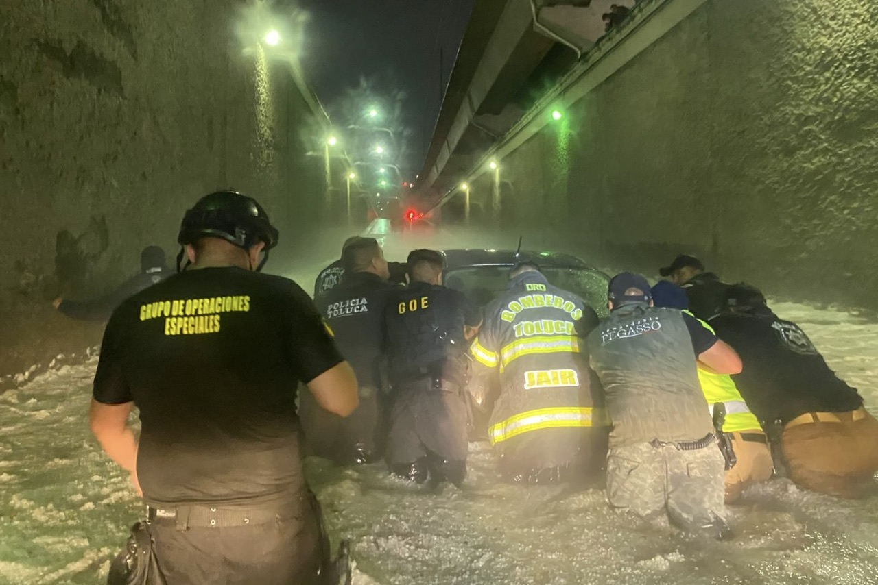 Como parte de las acciones de respuesta, elementos de la Policía Municipal brindaron asistencia directa a personas que quedaron atrapadas en sus vehículos en el bajo puente ubicado en la intersección de avenida Las Torres y Jesús Carranza, donde liberaron cuatro vehículos y ocho personas.
