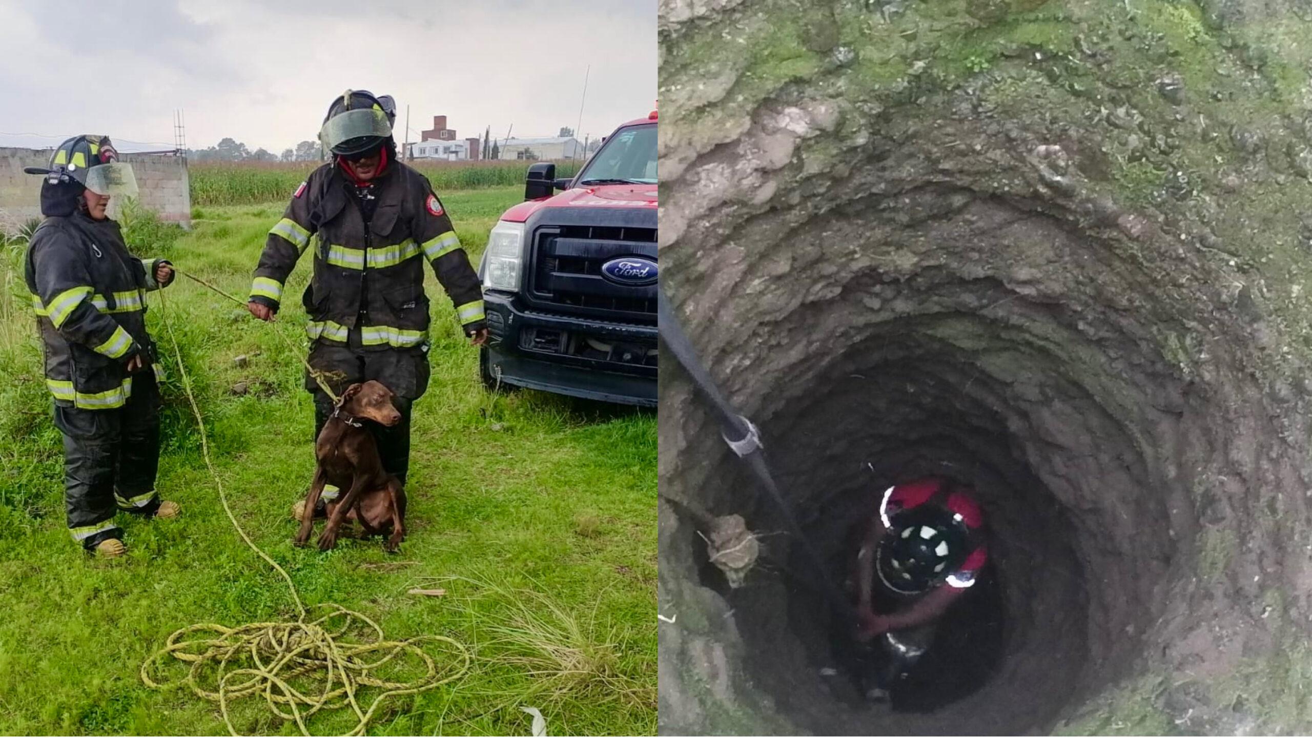 Toluca, Estado de México, 29 de agosto del 2025.- Tras atender un reporte ciudadano, elementos del Heroico Cuerpo de Bomberos de Toluca rescataron a un lomito que cayó a un pozo artesiano de aproximadamente 10 metros de profundidad, en la delegación Capultitlán.