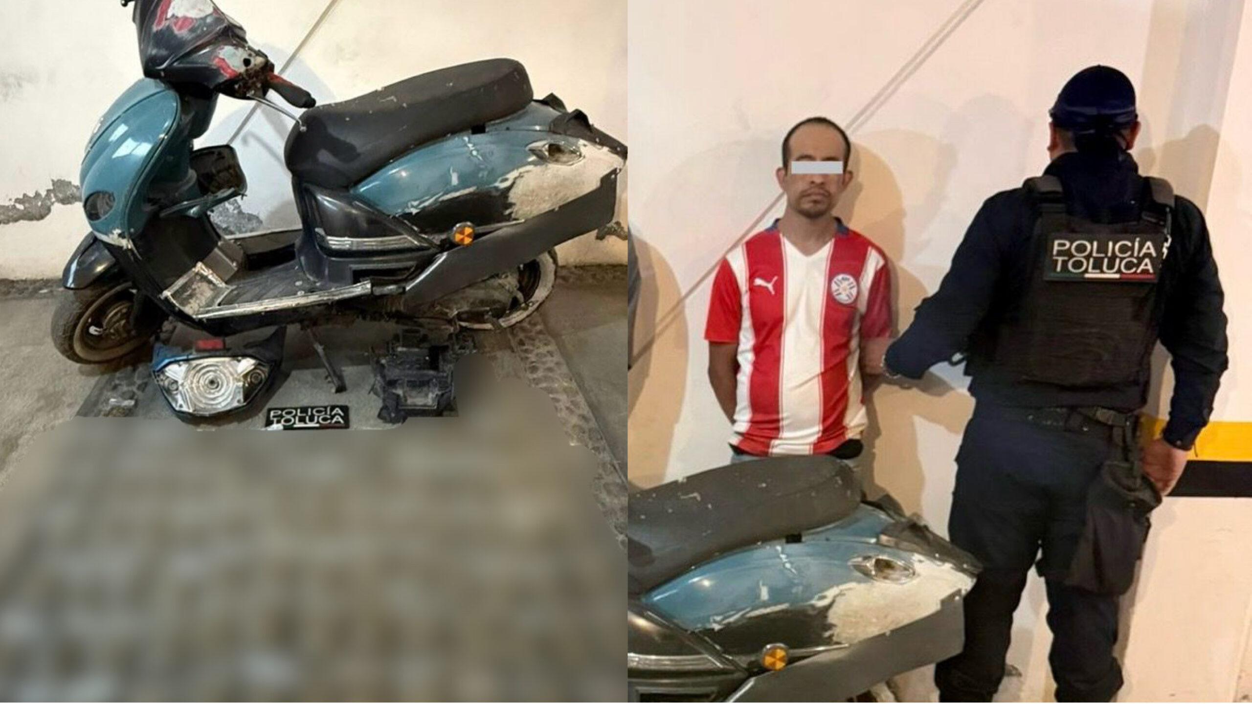 De acuerdo con el reporte oficial, los uniformados realizaban recorridos de vigilancia cuando sorprendieron a los sospechosos desvalijando una motoneta Italika Vitalia 150, color azul, en la esquina de las calles De La Palma e Independencia.