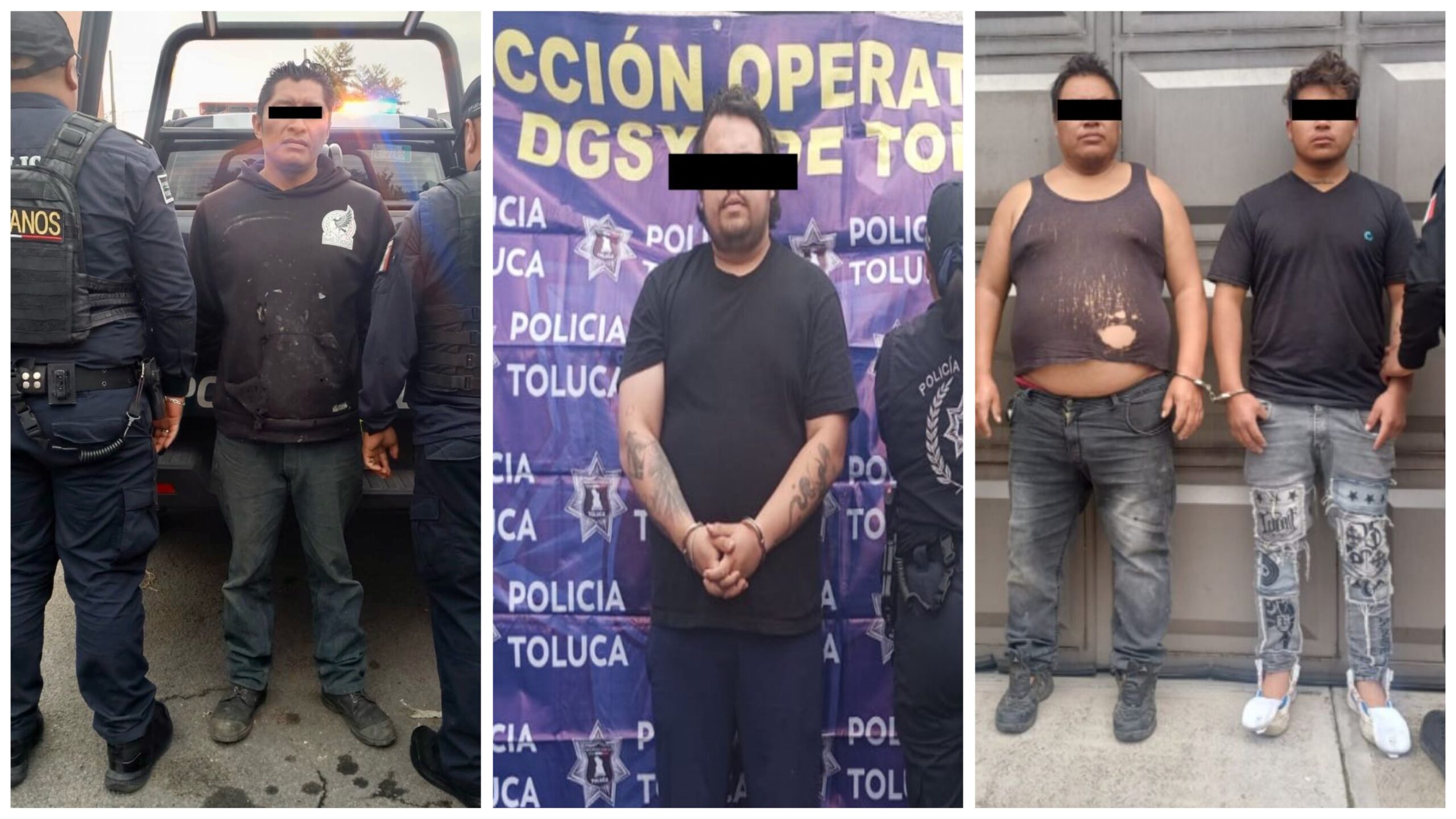 Otros tres hombres fueron arrestados por encubrimiento de vehículos robados: Crístopher Héctor “N”, de 19 años, con una Italika 200Z, en El Seminario; Juan Pablo “N”, de 24, en un Pontiac G5 en San Lorenzo Tepaltitlán; y Óscar Iván “N”, de 32 años, con un Dodge Attitude 2023 en la delegación Centro Histórico.