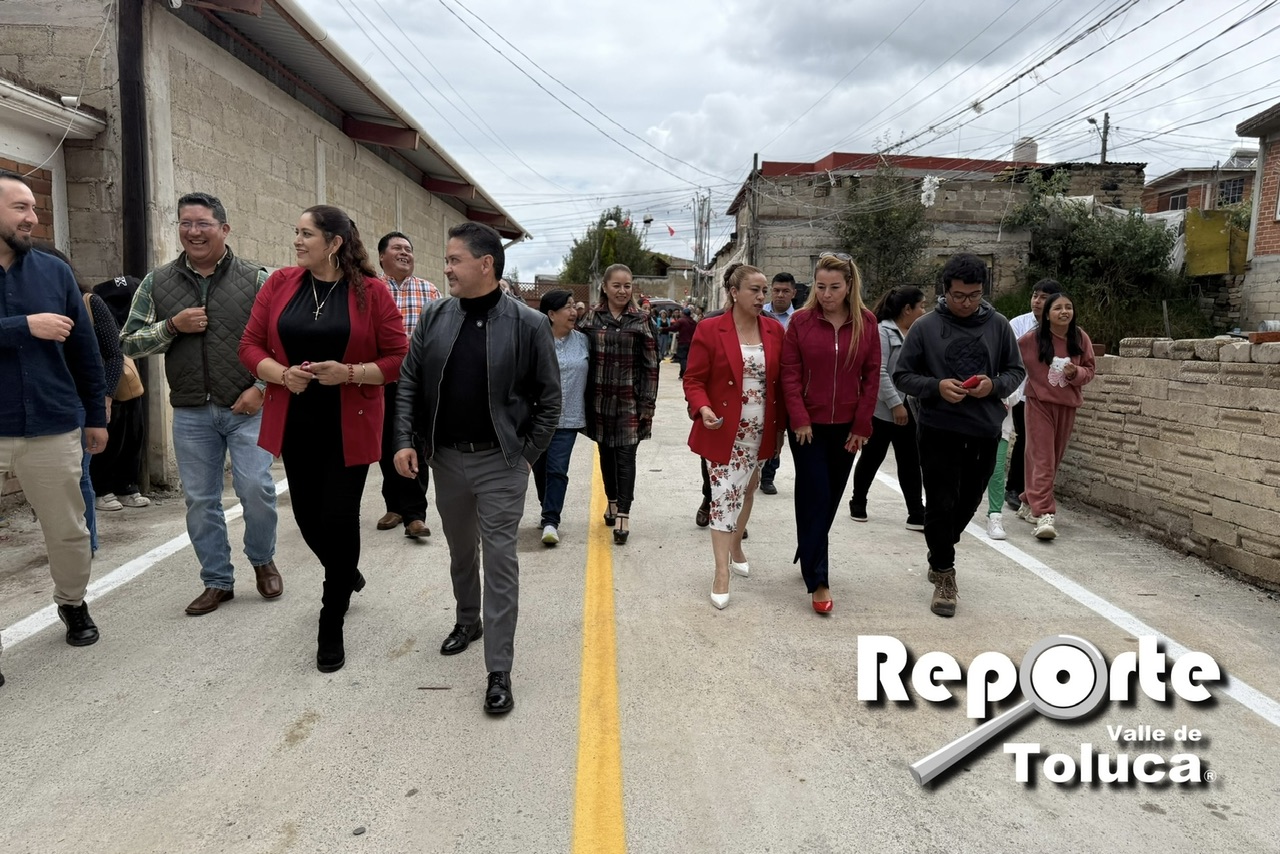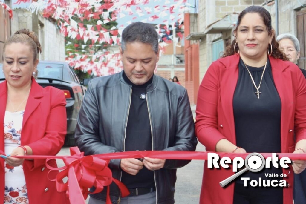 Calimaya, Méx a 27 de agosto del 2025.- TRES Callejones en la comunidad de San Lorenzo Cuauhtenco de entre 75 y 85 metros lineales cada uno, fueron inaugurados por el presidente municipal de Calimaya Omar Sánchez Velázquez, que tienen como objetivo garantizar un tránsito seguro de automóviles y peatones.