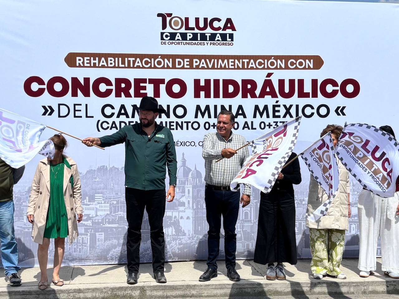 Además, junto al alcalde de Toluca, Ricardo Moreno Bastida, dio el banderazo de los trabajos para completar otros 400 metros de este camino y mejorar la conectividad con la Autopista Toluca – Atlacomulco y la carretera de Palmillas.