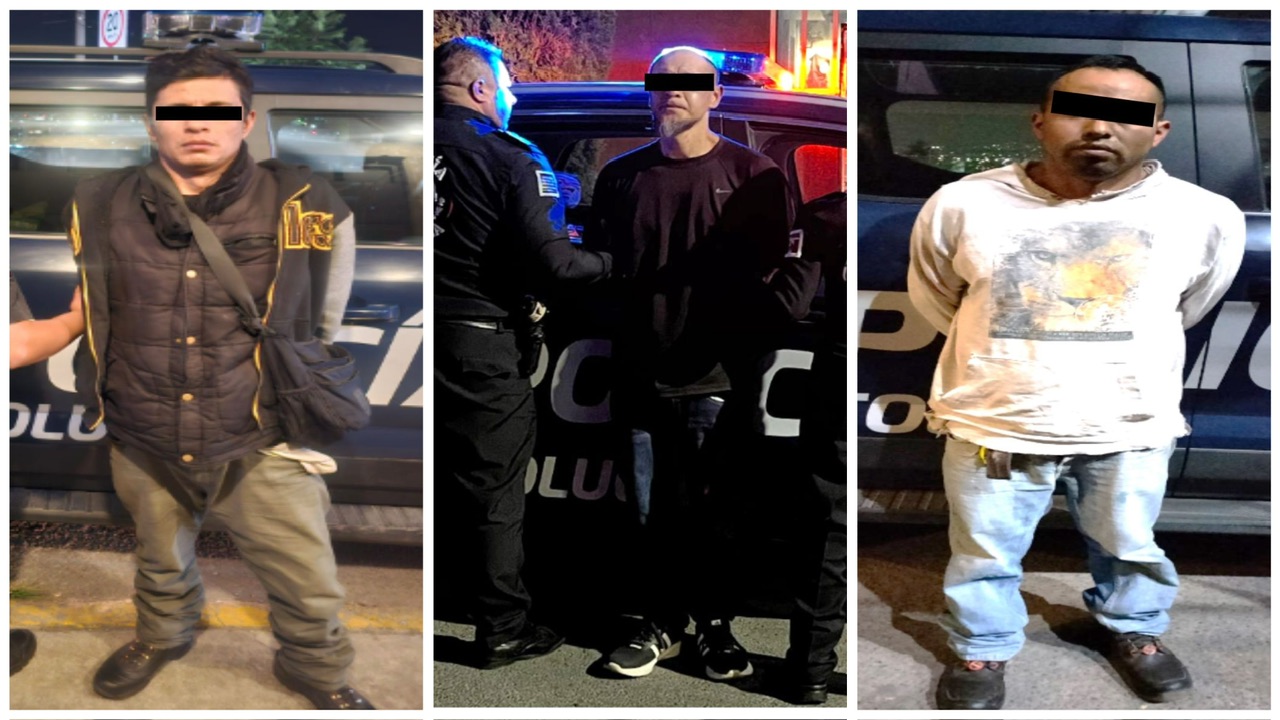 Toluca, Estado de México, 31 de octubre de 2025.- En tres acciones distintas, elementos de la Policía Municipal de Toluca detuvieron a tres hombres señalados por violación simple, abuso sexual y robo con violencia, en operativos realizados en distintos puntos de la ciudad.