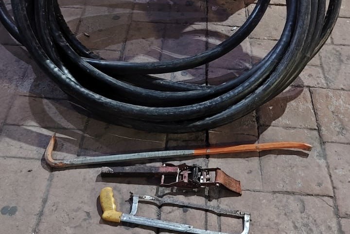 Durante la intervención, los oficiales aseguraron aproximadamente 20 metros de cable de cobre, así como una segueta y una cizalla. Los detenidos fueron identificados como Emmanuel “N”, de 35 años, y Marco Antonio “N”, de 47, quienes fueron puestos a disposición de la Fiscalía General de Justicia del Estado de México.