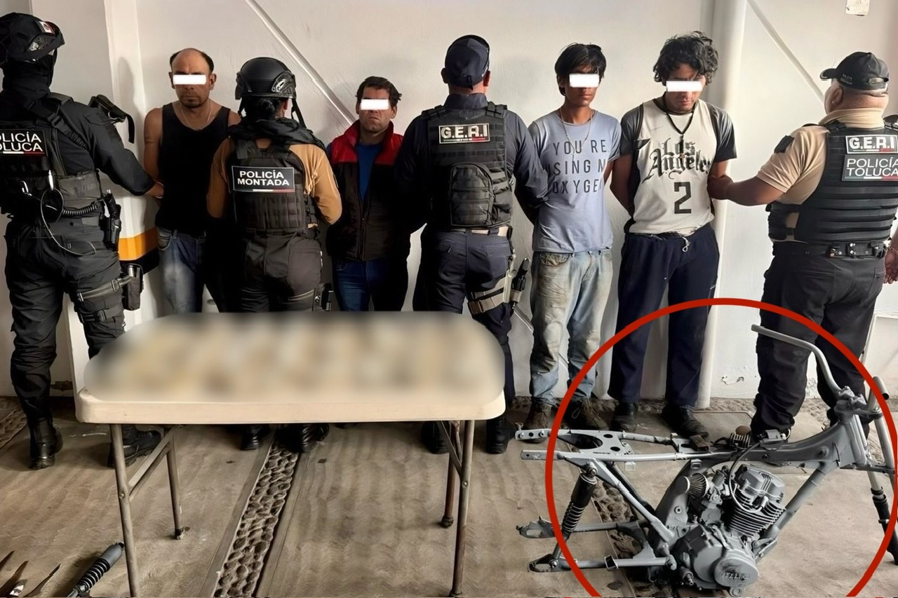 Cuatro hombres, de entre 32 y 44 años de edad, fueron detenidos por elementos de la Policía Municipal cuando desvalijaban una motocicleta en las calles Biblioteca y Bellas Artes de la colonia Cultural, delegación San Buenaventura.