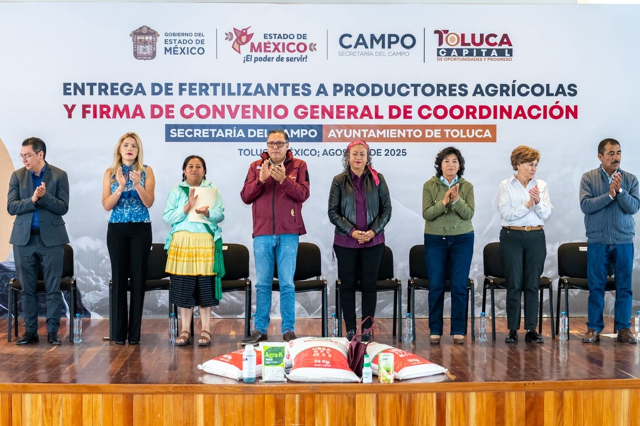 Toluca, Estado de México, 7 de agosto de 2025.- El gobierno de Toluca entregó 60 toneladas de fertilizante a personas productoras, además de acordar con la Secretaría del Campo del Gobierno del Estado de México el impulso de acciones para favorecer el desarrollo agropecuario en la capital.