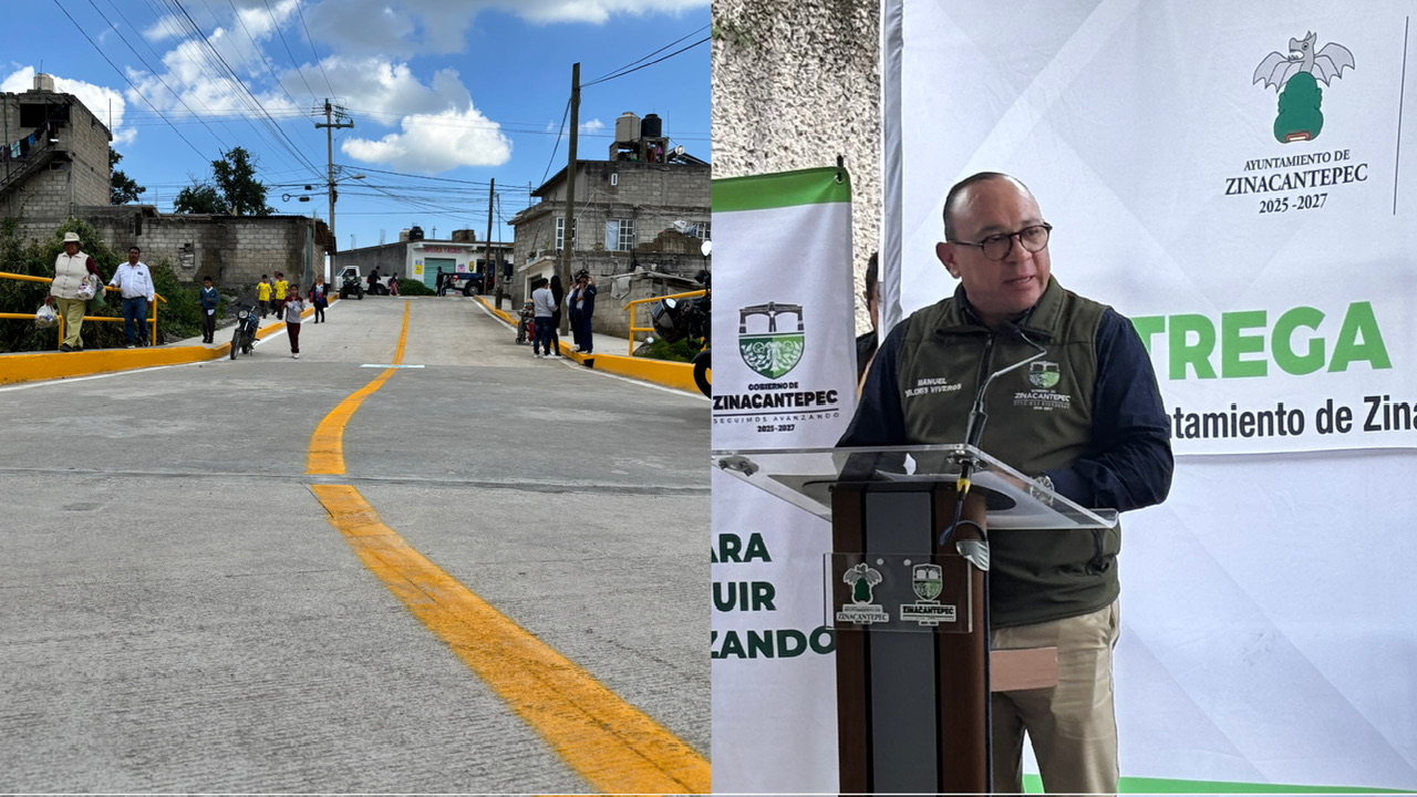 El presidente municipal de Zinacantepec, Manuel Vilchis Viveros, entregó la pavimentación de la calle conocida como Camino al Colín en San Antonio Acahualco, que beneficia a más de 400 familias que transitan diariamente por la zona.