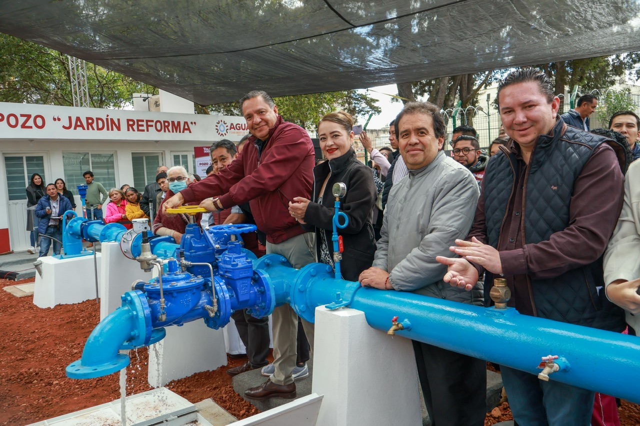 Toluca, Estado de México, 28 de noviembre de 2025.- El alcalde Ricardo Moreno inauguró el Pozo Jardín Reforma en beneficio de más de 14 mil 400 vecinos de las colonias Ferrocarriles Nacionales, Huitzila y Doctores, quienes durante 30 años han tendido fallas en el suministro y a partir de ahora, tendrán garantizado su acceso al líquido.