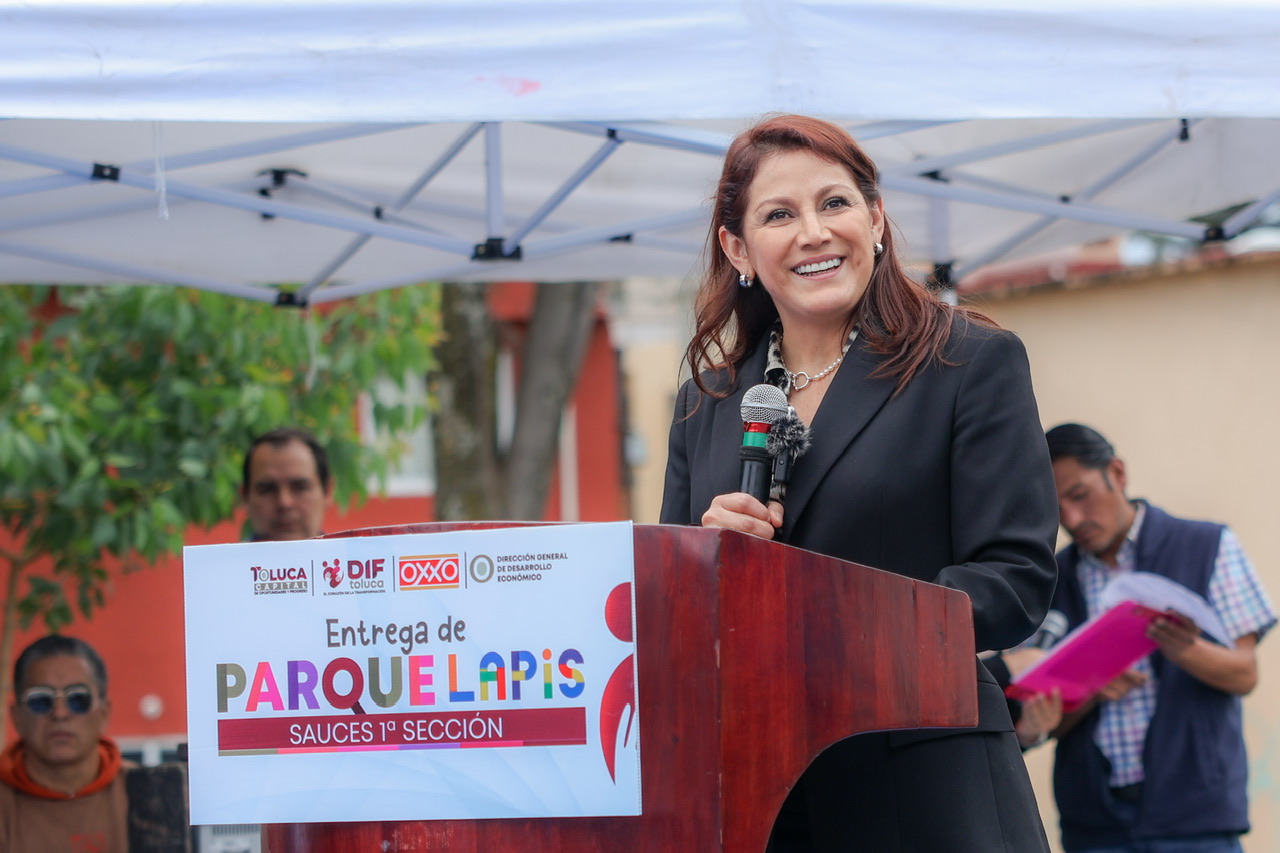 Durante la inauguración, la Presidenta Honoraria del DIF Toluca, Rocío Pegueros Velázquez, señaló que el parque, ubicado en Sauces Primera Sección, fue posible gracias a la coordinación con tiendas OXXO, poniendo en el centro a las niñas y niños, y promover su bienestar social, subrayó además que este tipo de proyectos transforma el entorno urbano y fomentan la apropiación de los espacios públicos.