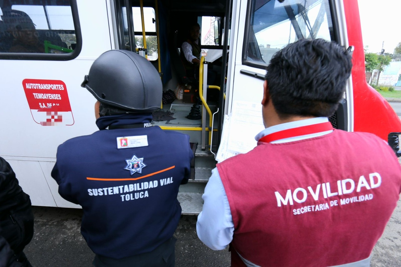 Toluca, Estado de México, 26 de junio de 2025.- En el operativo conjunto Pasajero Seguro, el Gobierno municipal de Toluca, encabezado por el alcalde Ricardo Moreno, y la Secretaria de Movilidad estatal aplicaron nueve infracciones a unidades del transporte público, entre ellos, un conductor que conducía en completo estado de ebriedad.