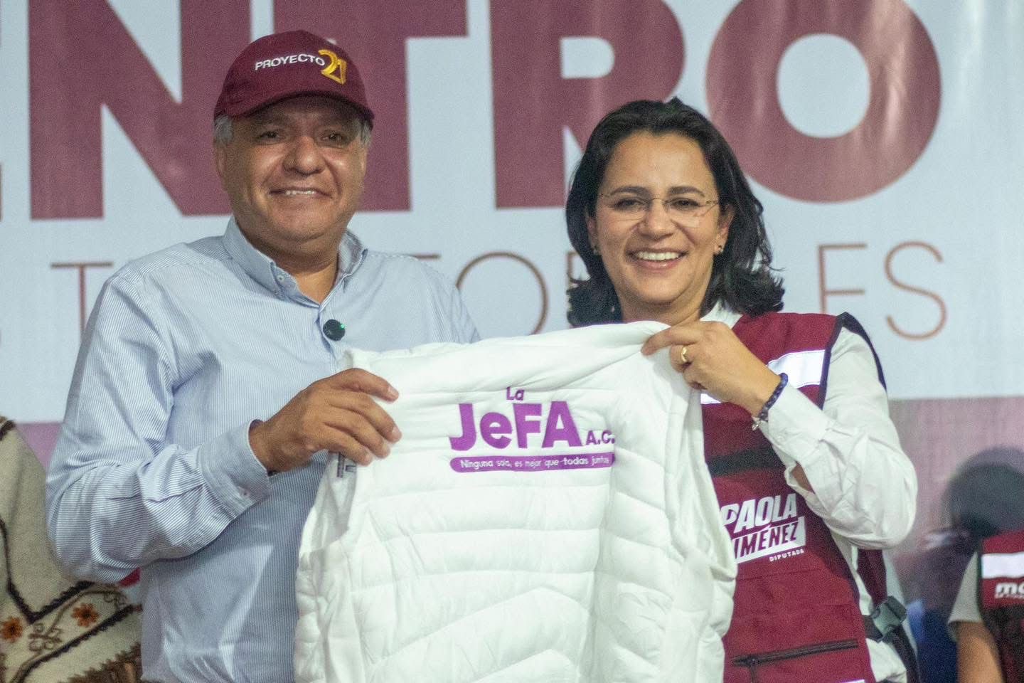 Durante el encuentro con integrantes de La JeFA A.C., la diputada Paola Jiménez refrendó su respaldo al Movimiento de Regeneración Nacional (Morena) y a la labor social que impulsa Proyecto 21. “Es en congruencia con mis convicciones y con humildad que hoy llego a Morena, para sumar trabajo, esfuerzo y resultados en favor de Toluca”, expresó.