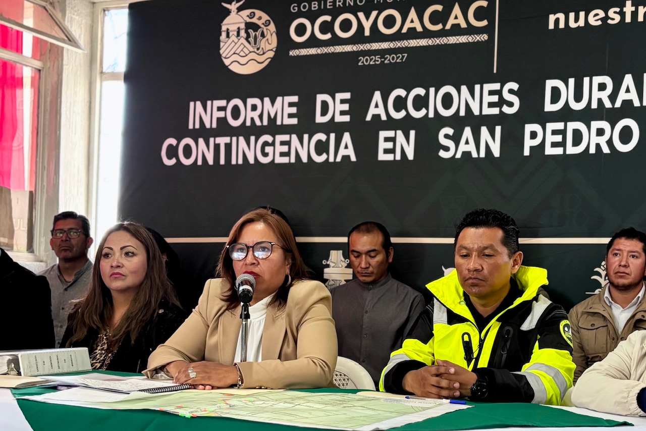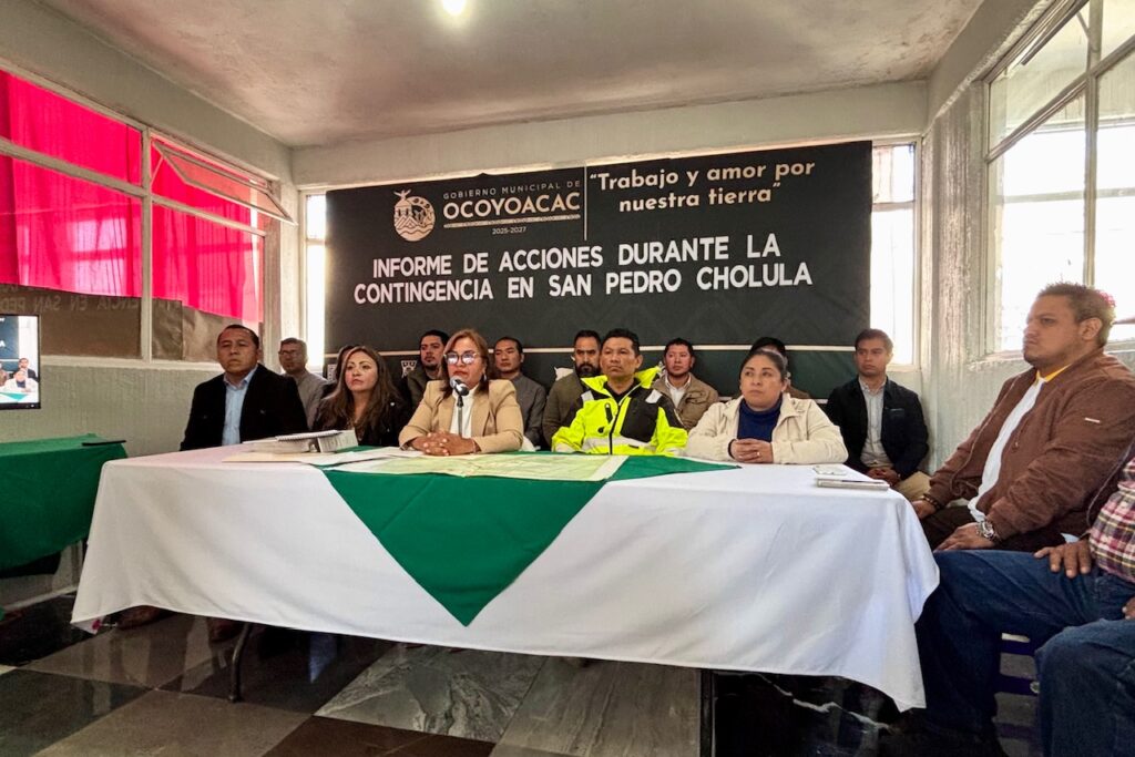 Ocoyoacac, 29 de octubre de 2025.- La presidenta municipal de Ocoyoacac, Nancy Valdez, rindió un informe detallado sobre las acciones realizadas durante la contingencia provocada por las lluvias más fuertes que ha vivido el municipio en los últimos años. El informe se presentó en un evento ante medios de comunicación, autoridades de los tres niveles de gobierno y la comunidad en general.