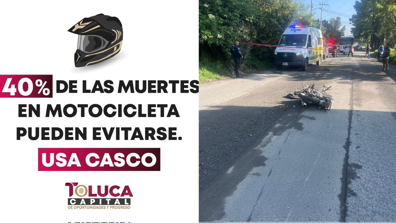 Ante este trágico suceso, el Gobierno Municipal de Toluca hace un llamado firme y urgente a todas las personas que conducen motocicleta a usar casco y equipo de protección no es opcional, es cuestión de vida o muerte.