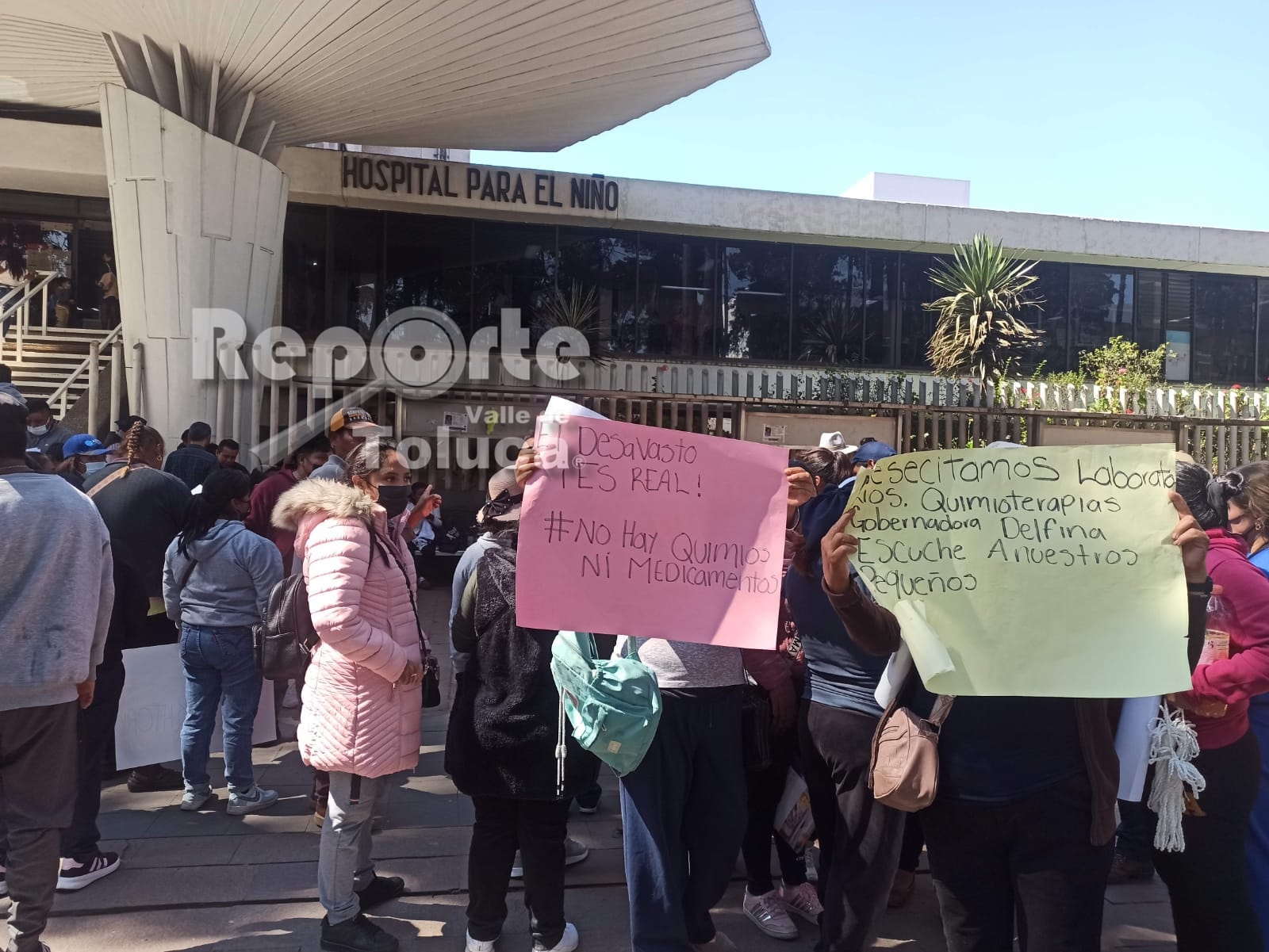 Padres de familia de niños y niñas con cáncer piden medicamentos y tratamientos ante el desabasto en el Hospital para el Niño, en Toluca.