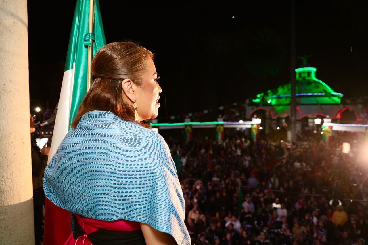 Al llegar la medianoche, la explanada se llenó de júbilo cuando la Presidenta Municipal dio el tradicional Grito de Independencia, coreado con fuerza por las familias reunidas, que ondearon banderas y gritaron al unísono: ¡Viva México!.