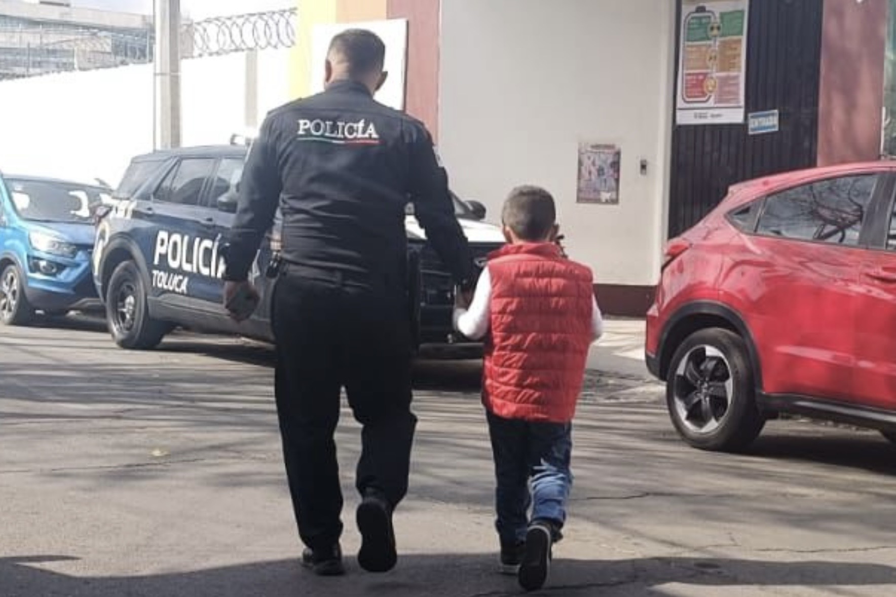 La búsqueda se extendió por calles aledañas hasta que el menor fue localizado en la intersección de Pino Suárez y Paseo Tollocan, en la colonia Santa María de las Rosas, a varios minutos del punto donde se le vio por última vez.