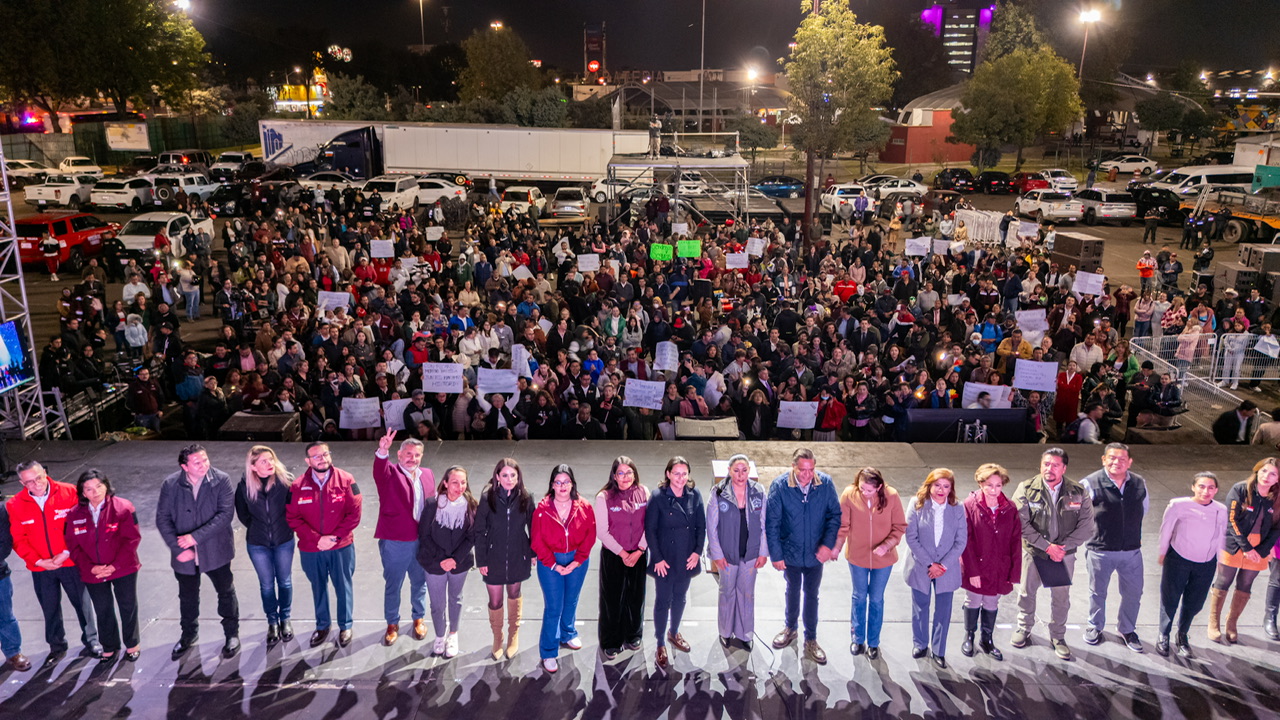 Por su parte, el director general de Servicios Públicos, Gustavo Anaya, explicó que también se amplió la red de alumbrado público con la instalación de 11 postes y sus respectivas luminarias solares para reforzar el alumbrado en el parque Estado de México; aunado a eso, se instalaron 27 reflectores tipo estadio al interior de la plaza del Mercado Juárez y ocho barras LED en la torre del mercado así como mil 500 metros de cable para energizar las de la plaza.