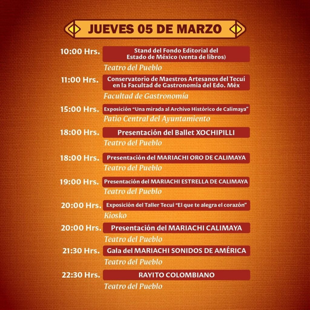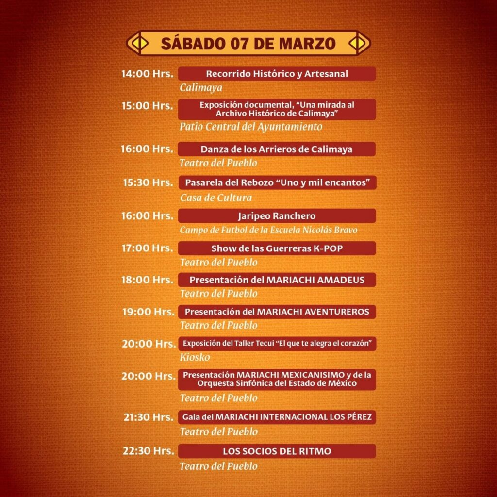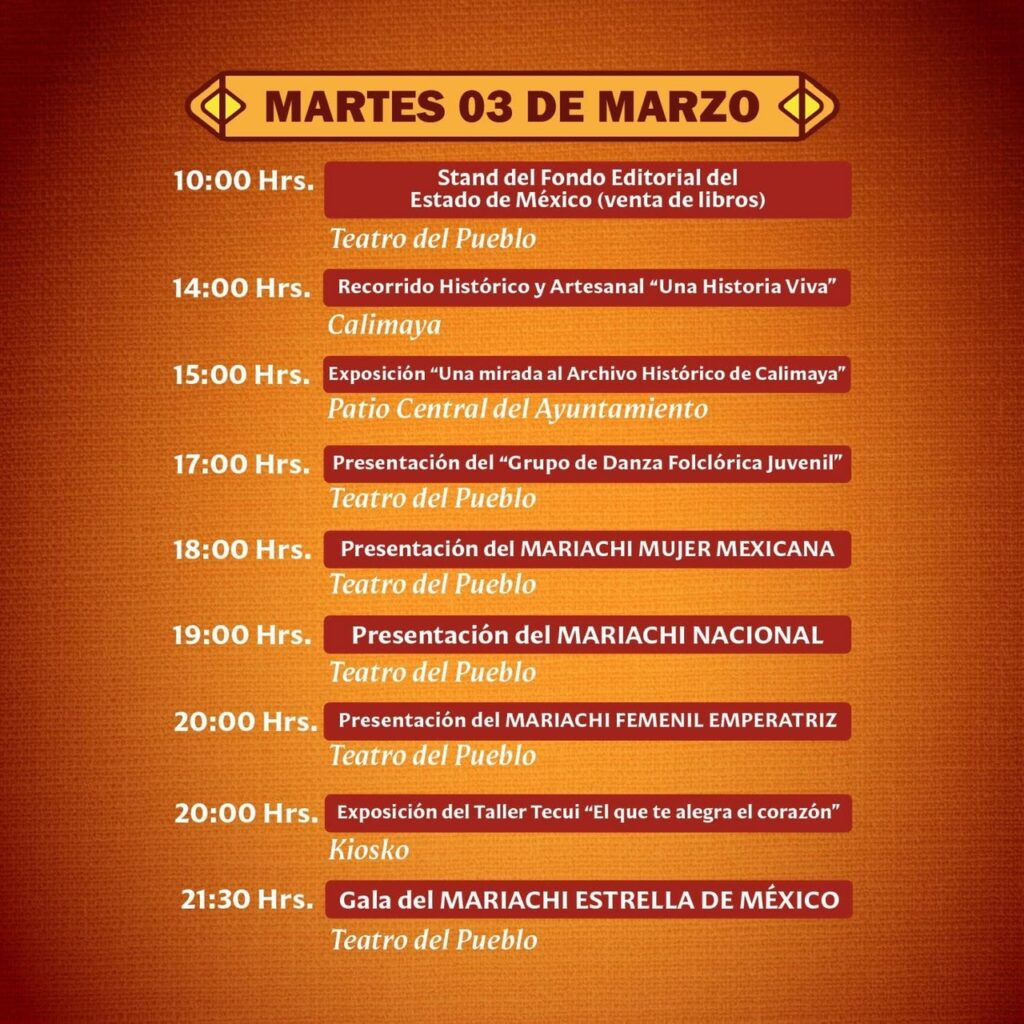El gobierno municipal de Calimaya encabezado por el presidente municipal Omar Sanchez Velázquez, presentó el programa completo del “Festival Internacional Cultural del Mariachi” en su edición número 26, que se llevará a cabo del 2 al 8 de marzo.