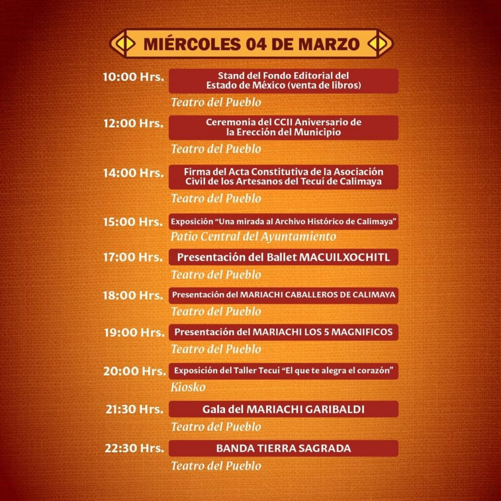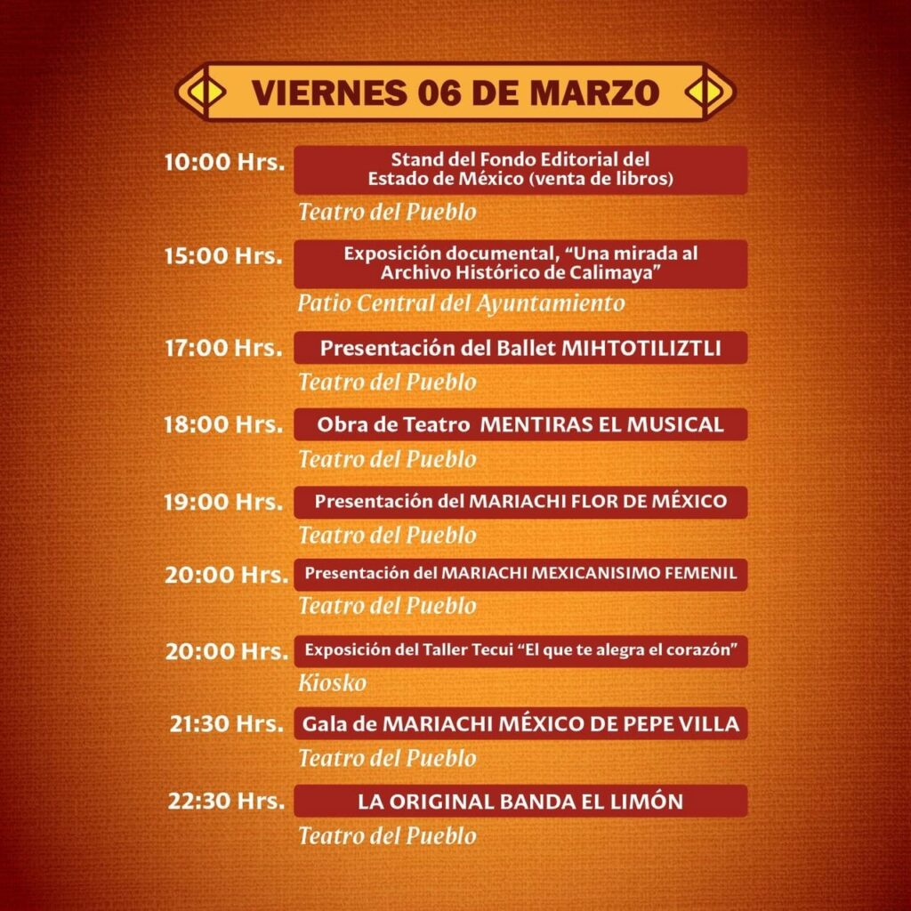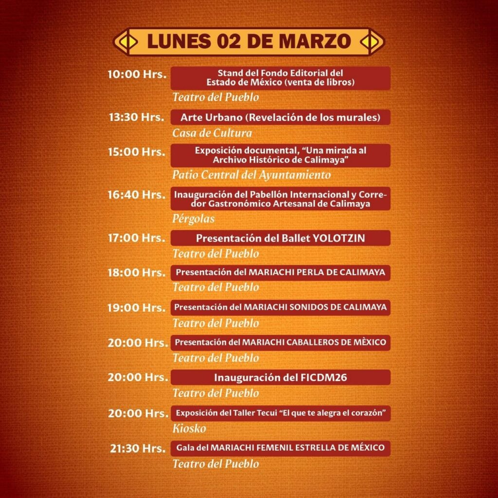 El gobierno municipal de Calimaya encabezado por el presidente municipal Omar Sanchez Velázquez, presentó el programa completo del “Festival Internacional Cultural del Mariachi” en su edición número 26, que se llevará a cabo del 2 al 8 de marzo.