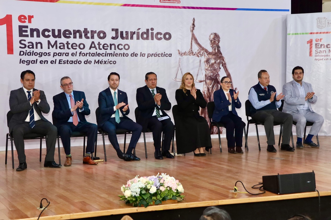 En el presídium estuvieron también presentes: el diputado Mariano Camacho San Martín, diputado local por el Distrito XXXV; el Mtro. Alejandro Gómez Sánchez, magistrado electo del Tribunal de Disciplina Judicial del Estado de México; el Mtro. Víctor Humberto Benítez González, presidente del Consejo Directivo del Colegio de Notarios del Estado de México; el Mtro. José Carlos Neira Cruz, presidente del Colegio de Abogados del Estado de México y el Lic. Eymard Legorreta de Paz, consejero jurídico de San Mateo Atenco.
