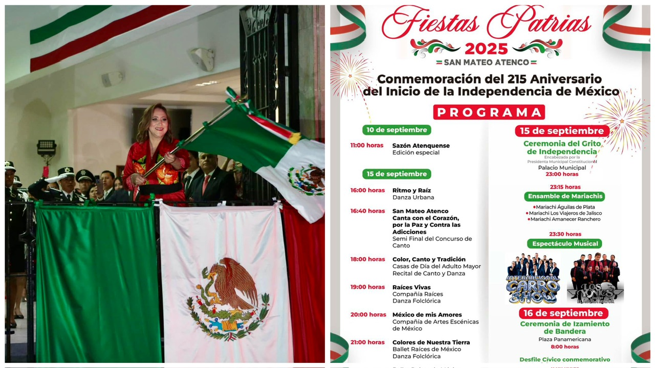 San Mateo Atenco, Estado de México, 12 de septiembre de 2025.– El Gobierno Municipal de San Mateo Atenco, presidido por Ana Muñiz Neyra, invita a toda la población a celebrar las Fiestas Patrias 2025, con un amplio programa de actividades cívicas, musicales, bailes regionales y tradiciones gastronómicas, además de la ceremonia del Grito de Independencia y el Desfile Cívico, en un ambiente familiar y de unión comunitaria.