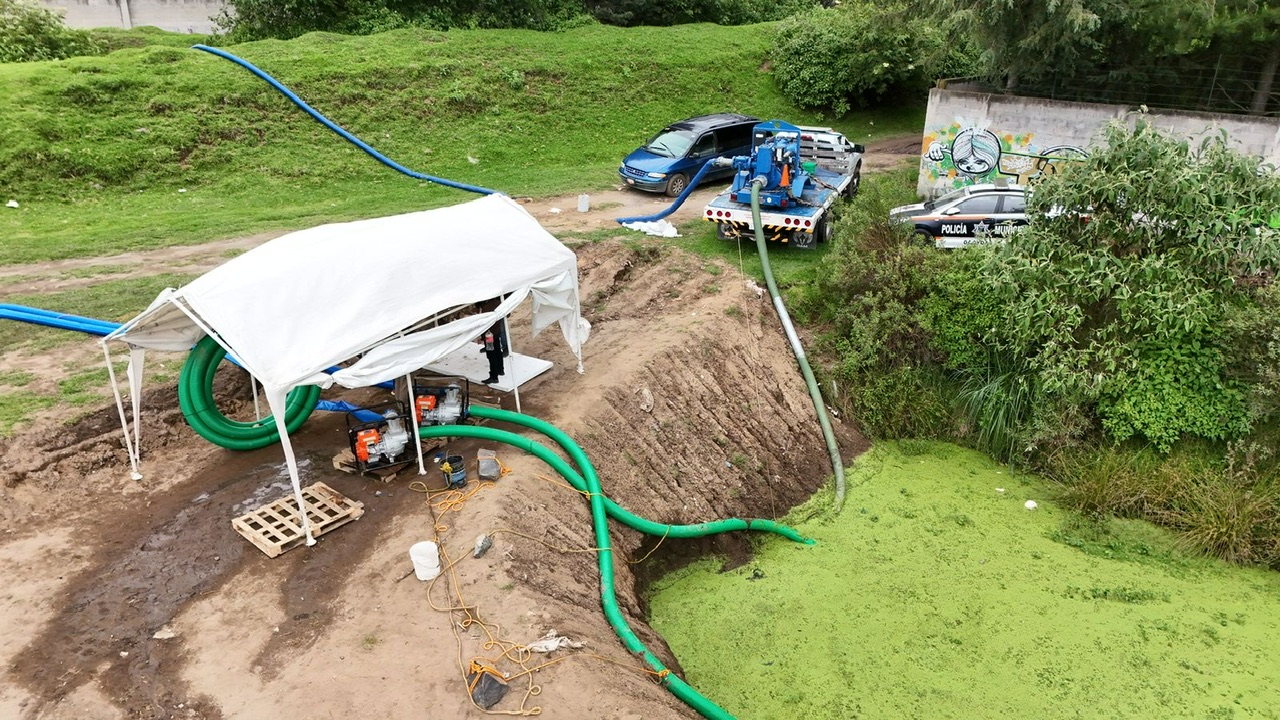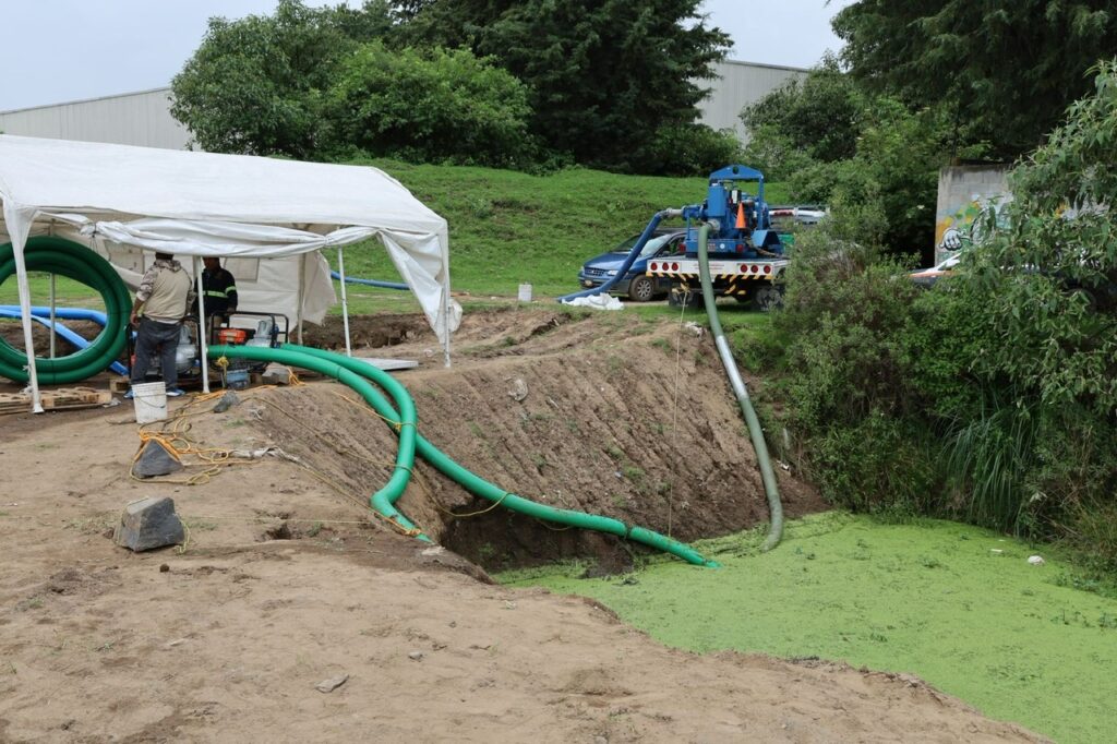 • En el cárcamo rústico, operan tres bombas que mantienen un trabajo constante de desagüe hacia el río Ocoyoacac.