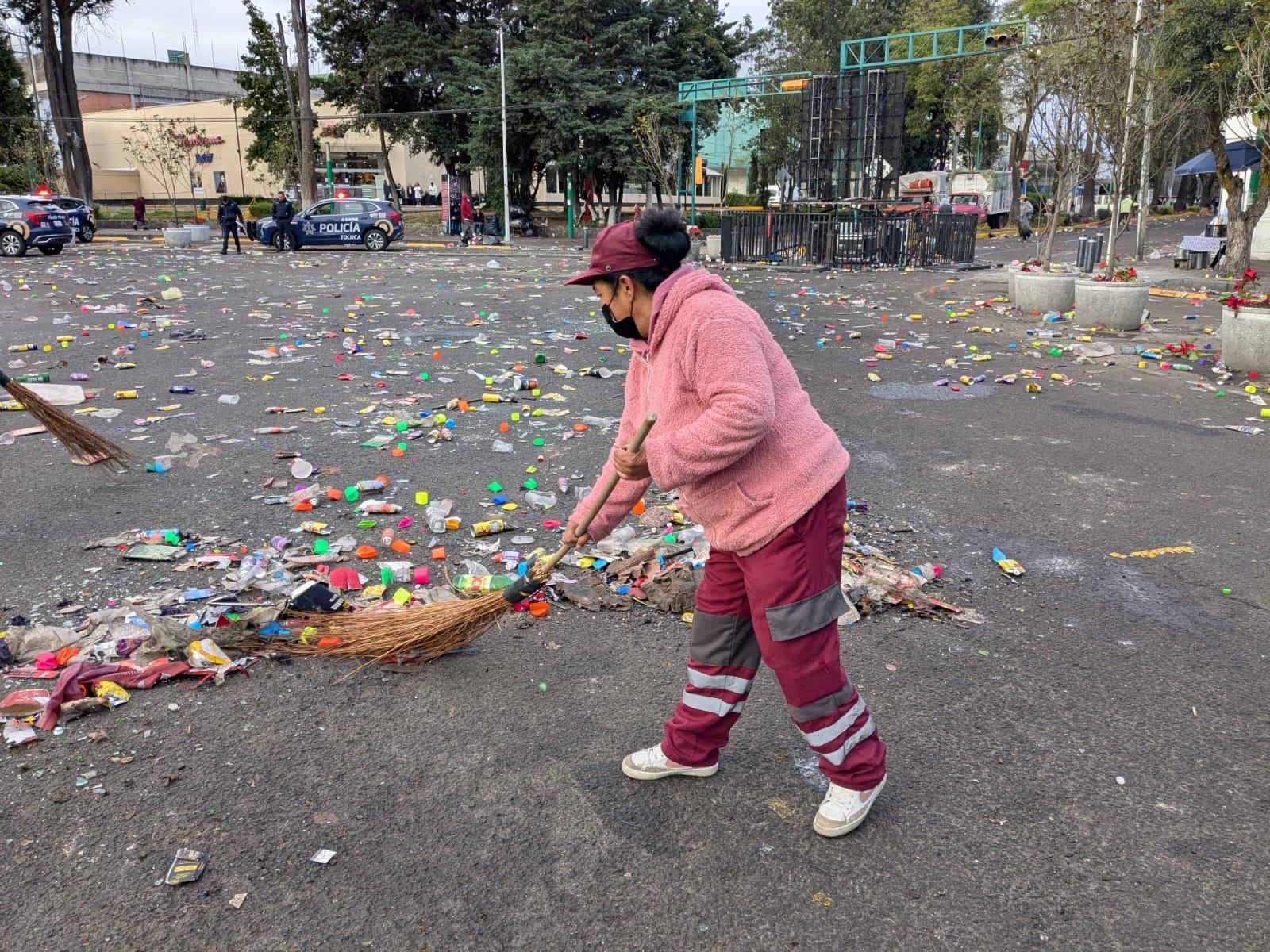 Toluca, Estado de México, 15 de diciembre de 2025.– Mientras miles de aficionados celebraban el bicampeonato del Deportivo Toluca la noche de ayer en el Estadio Nemesio Diez, personal de recolección municipal inició una labor esencial para la ciudad, limpiar los espacios públicos una vez concluida la celebración.